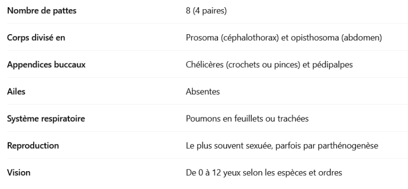 🕷️ Caractéristiques générales des arachnides
