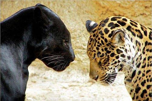 Pourquoi une Panthère Noire, les Félins comme d'autres mammifères, certains léopard sont mélaniques, changement génétique (mutation), la peau et la fourrure contiennent de grandes quantités d'un pigment noir, la mélanine.Les Léopards mélaniques ou Panthères Noires se rencontrent dans les forêts denses et humides, ils étaient considérés jadis comme une espèce séparè, dans le désert, les léopards sont jaune clair ; dans les herbes les Léopards sont d'un jaune plus foncé.