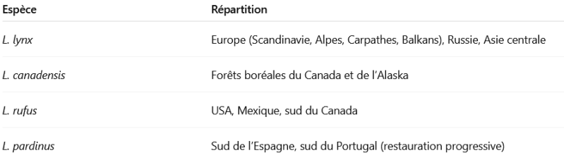 Félins de taille moyenne à petite (lynx, chats sauvages, guépards, chats domestiques)